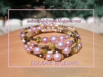 Los abalorios de los que conta son de un tubo adornado, dos bolas de 10mm, dos bolas de 8mm y seis bolas de 4mm.